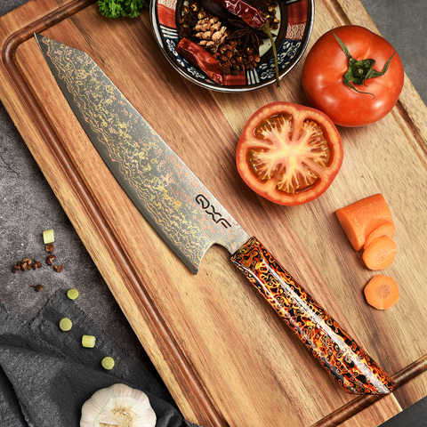 NEW Lacouer Art 8 Inch Chef Knife 33 Layer Copper Damascus Vg10 Steel Kiritsuke Knife Luxury Professional Kitchen Knife