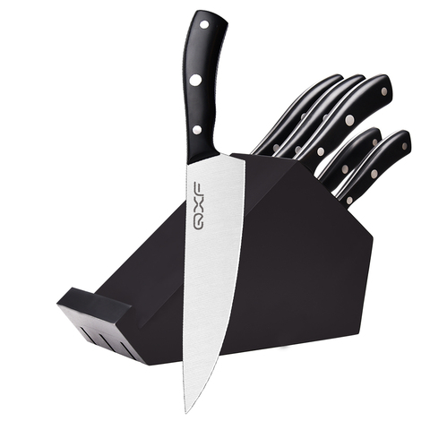 QXF 6 adet tam Tang tasarım ergonomik kolu ucuz mutfak bıçağı ahşap blok ile Set